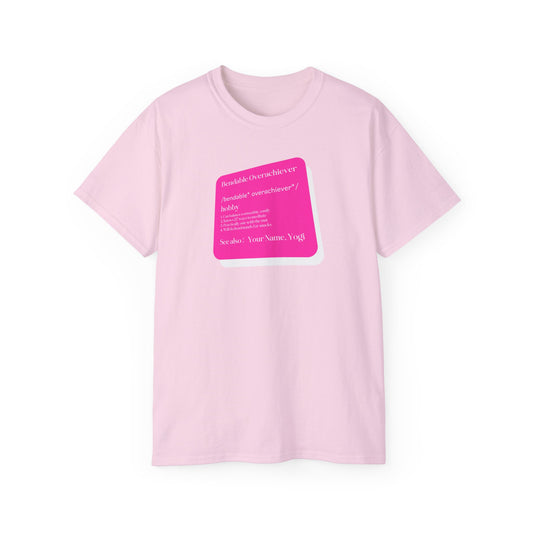 Make it personal! Add a name which will be part of 'See also'T-shirt for yoga - Bendable Overachiever Yoga Humor Tee - Balance, Meditate & Snack